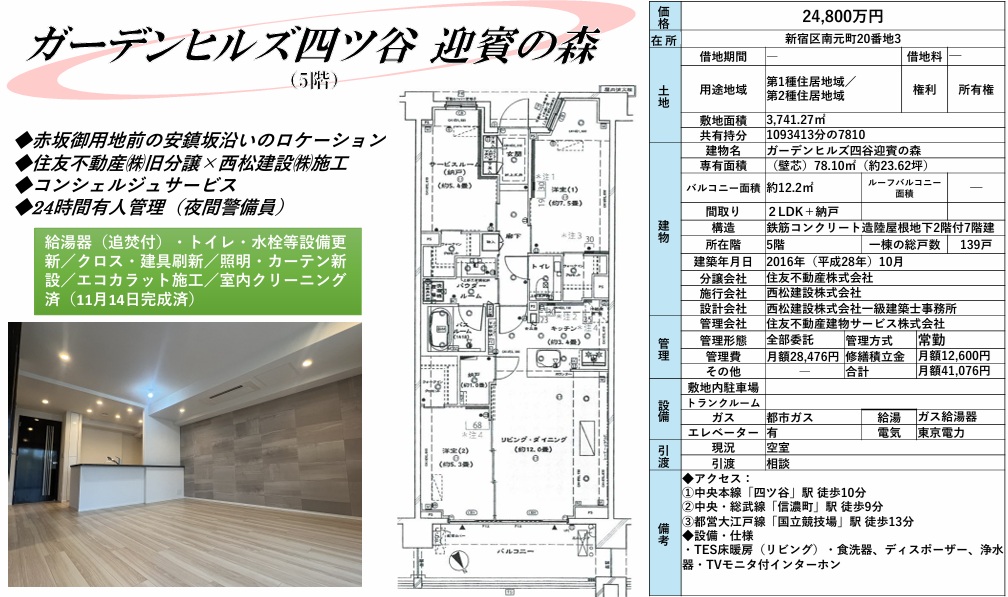 ■住友不動産旧分譲×西松建設施工、24時間有人管理。宅配ボックス・24時間ゴミ出し可・敷地内ゴミ置場。